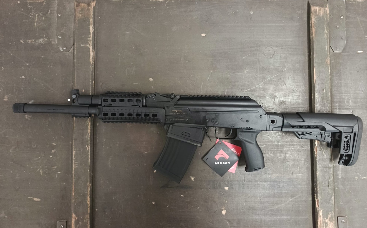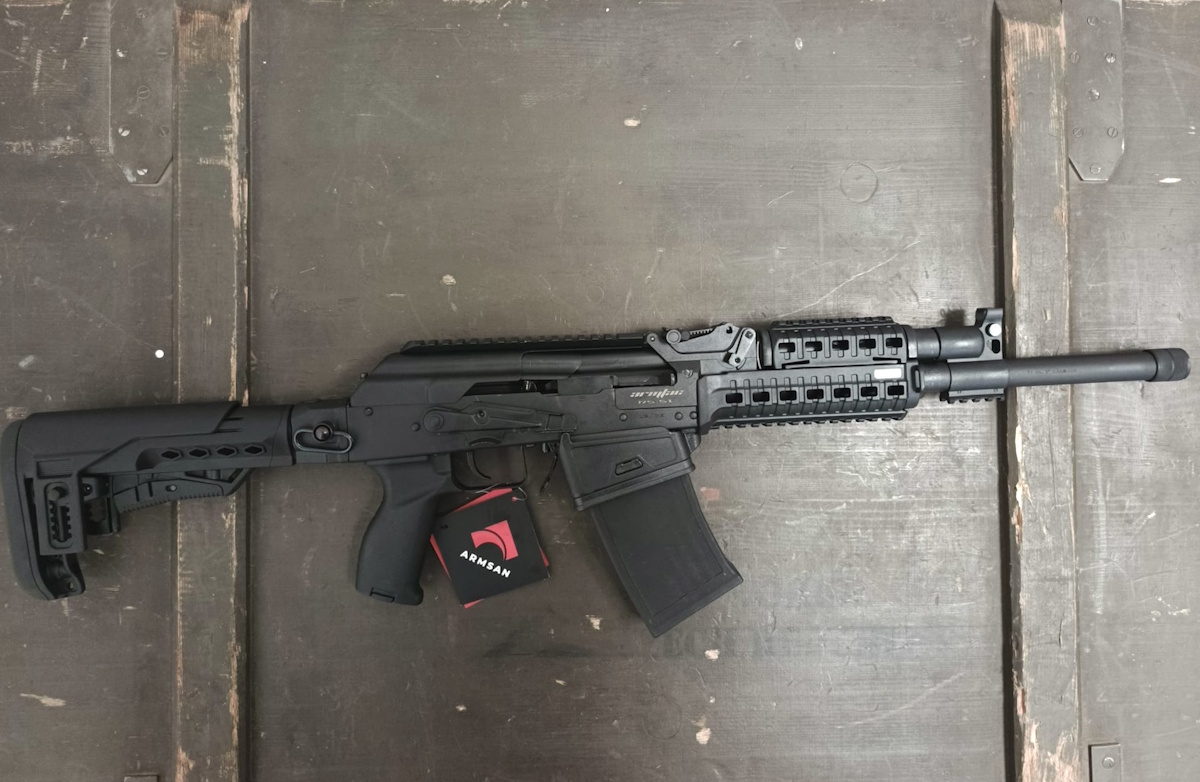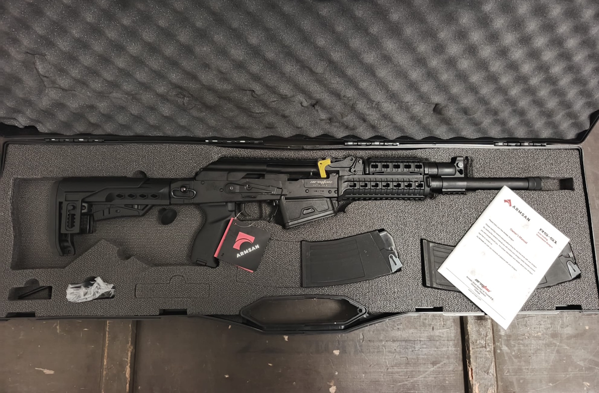 RS-S1 12-gauge (12/76) Armsan semi-automatic shotgun. The firearm is technically identical to the Saiga 12 / Molot 12 family shotguns, including magazine compatibility, etc.