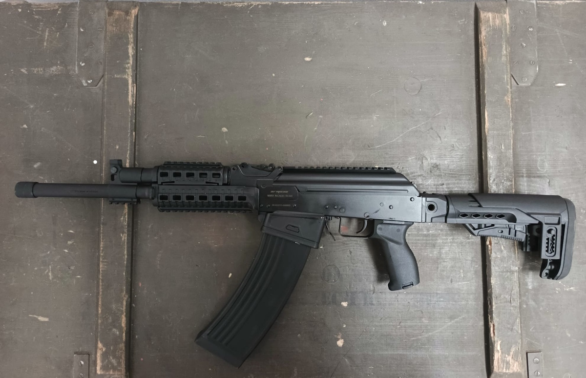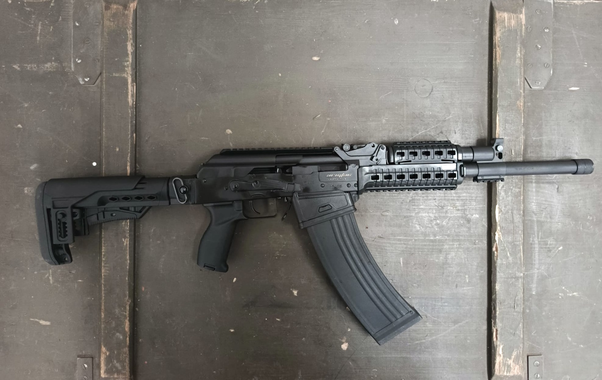 RS-S1/AS-12 12-gauge (12/76) fully automatic shotgun. The firearm is technically identical to the Saiga 12 / Molot 12 family shotguns, including magazine compatibility, etc.