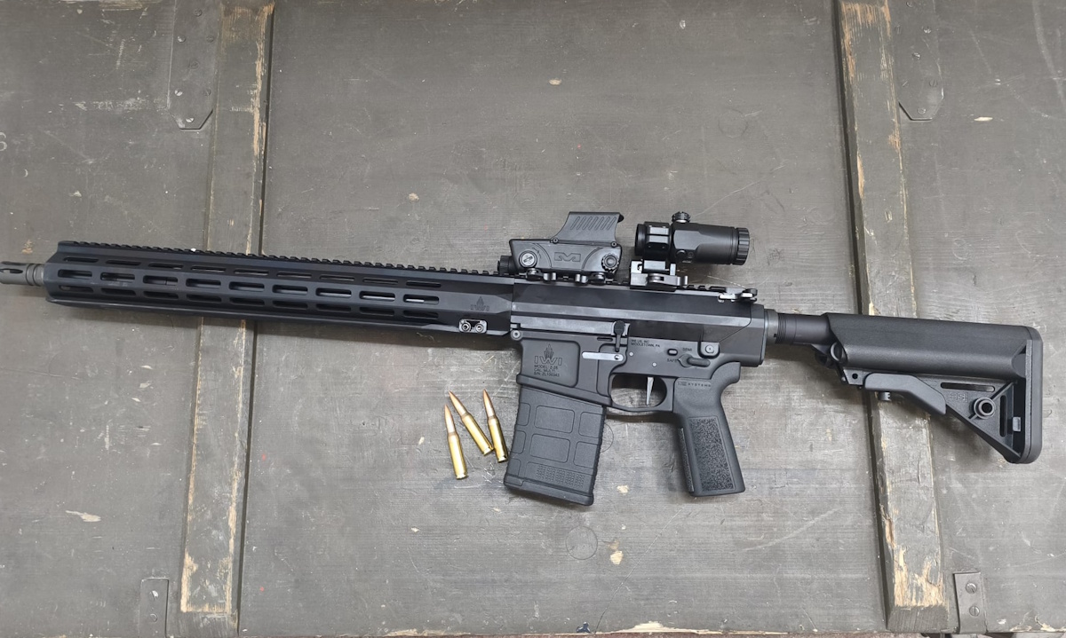 The 18″ barreled DMR large frame gas gun variant from IWI US is a 18″ precision rifle featuring a 17″ Freefloat Handguard with M-LOK and ARCA, a B5 Systems Stock and Grip, and includes one (1) 20 round Magpul PMAG. The 18” barrel allows the user to take advantage of much of the .308 Winchester’s velocity and accuracy potential without sacrificing mobility, even with a suppressor.