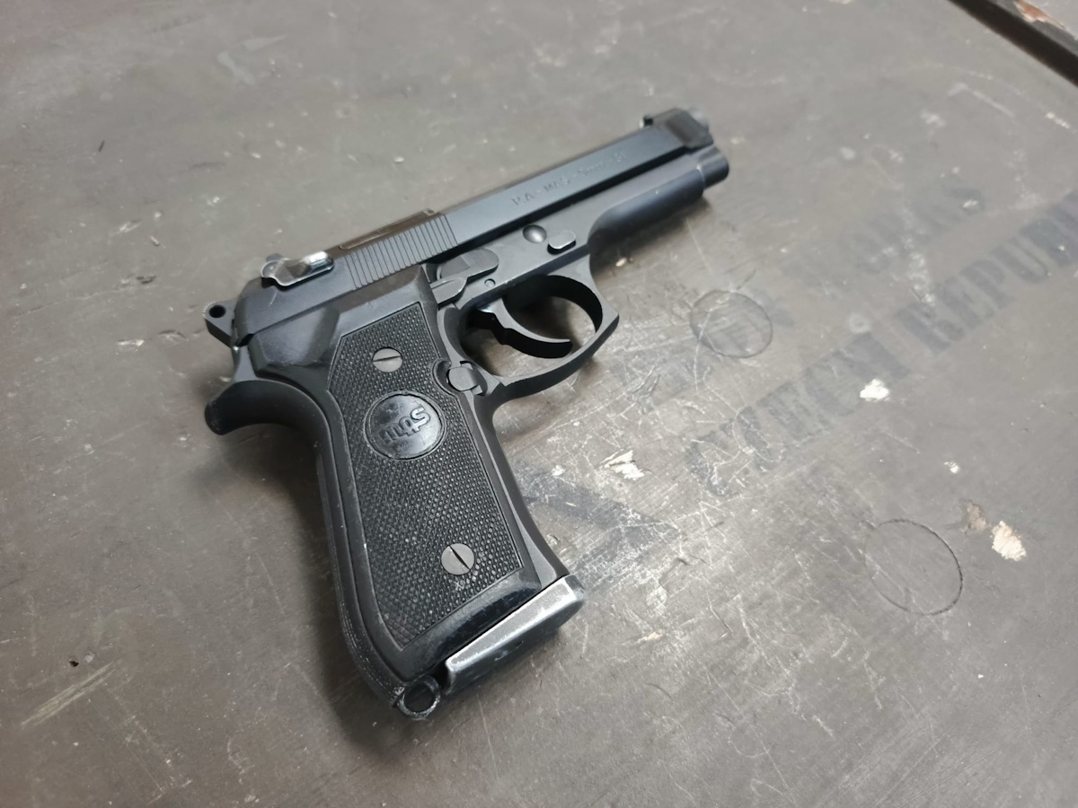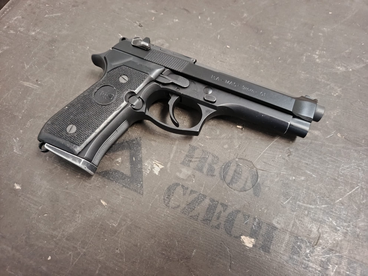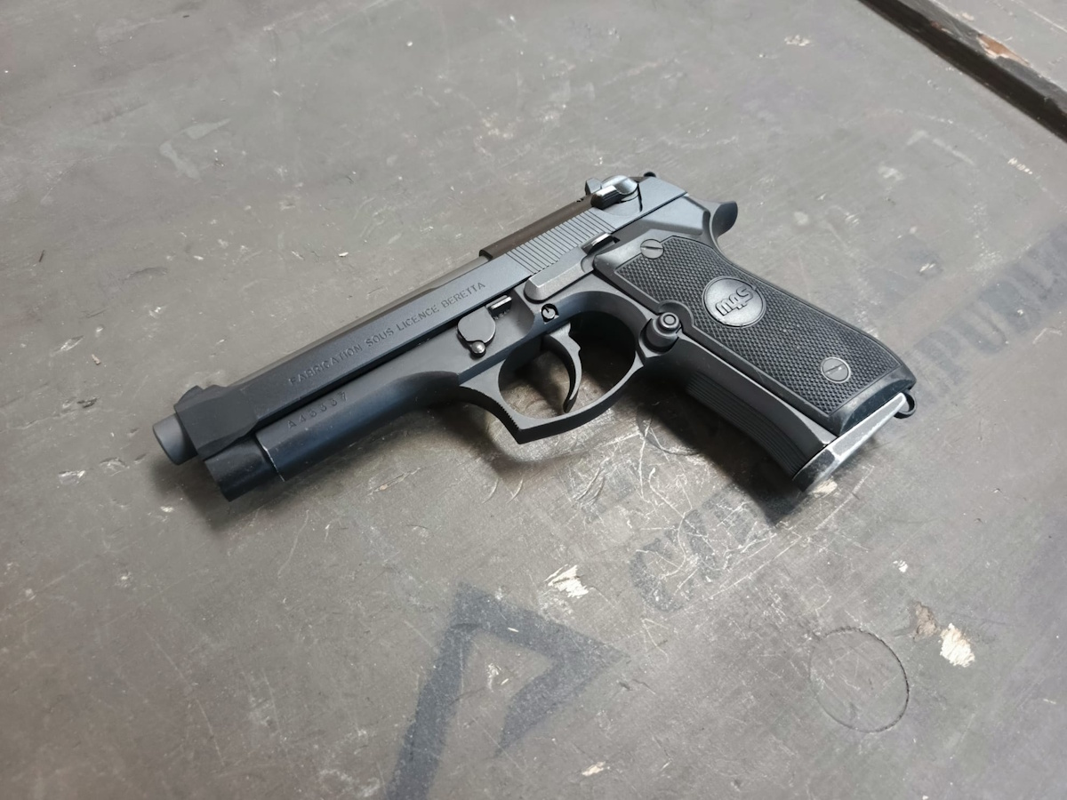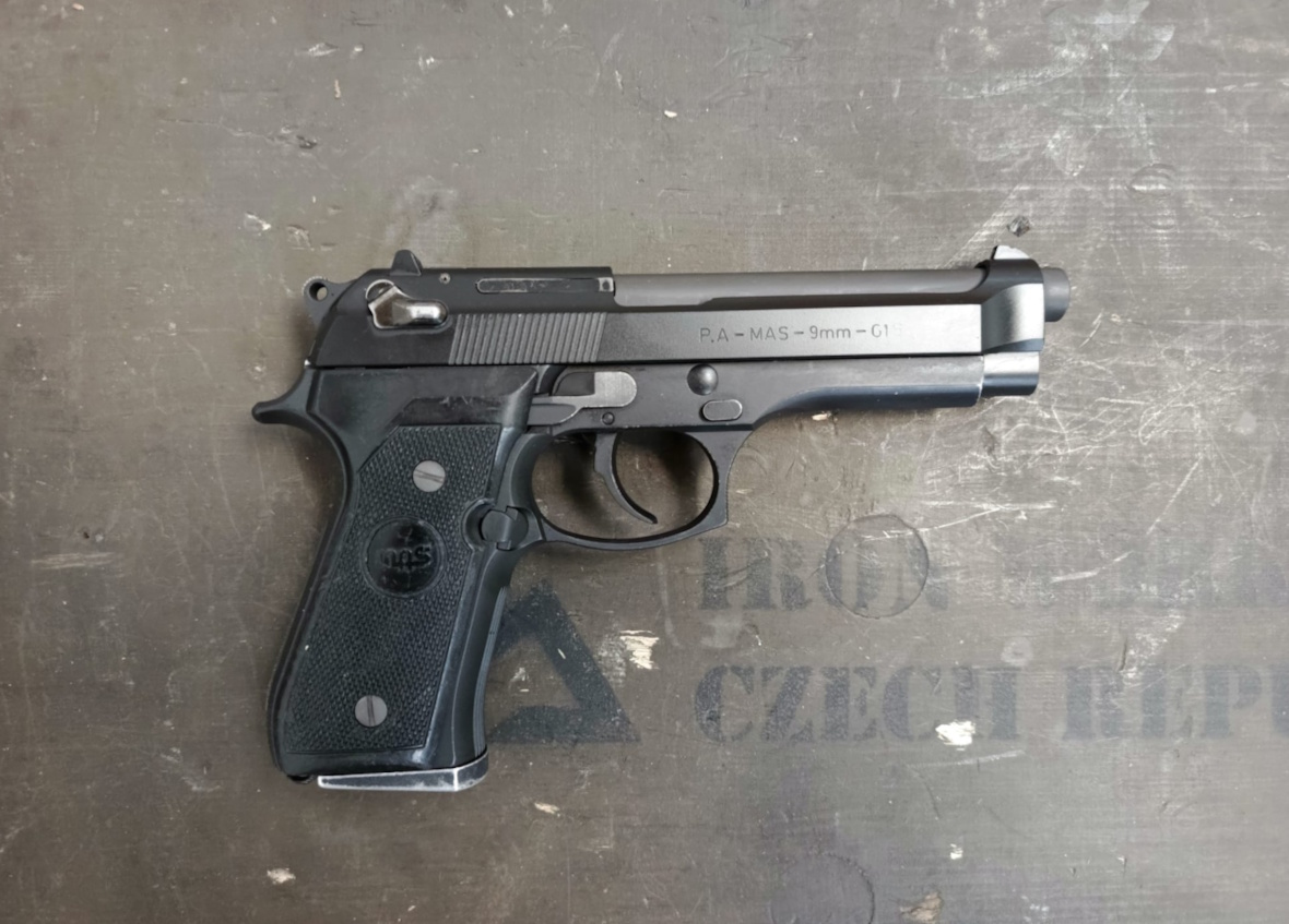 Francouzská služební pistole ráže 9mm Luger. Licenční klon pistole Beretta 92FS u francouzské zbrojovky MAS.