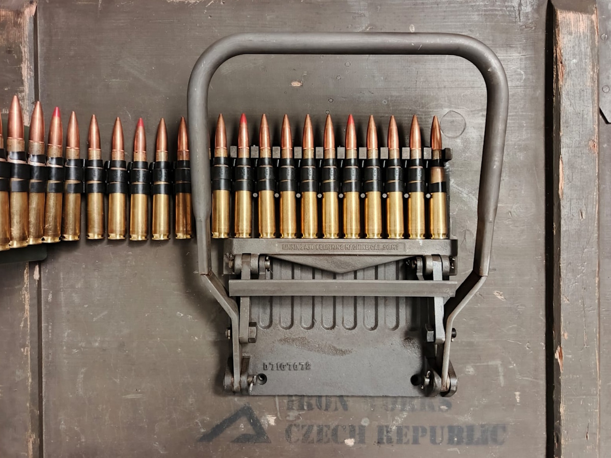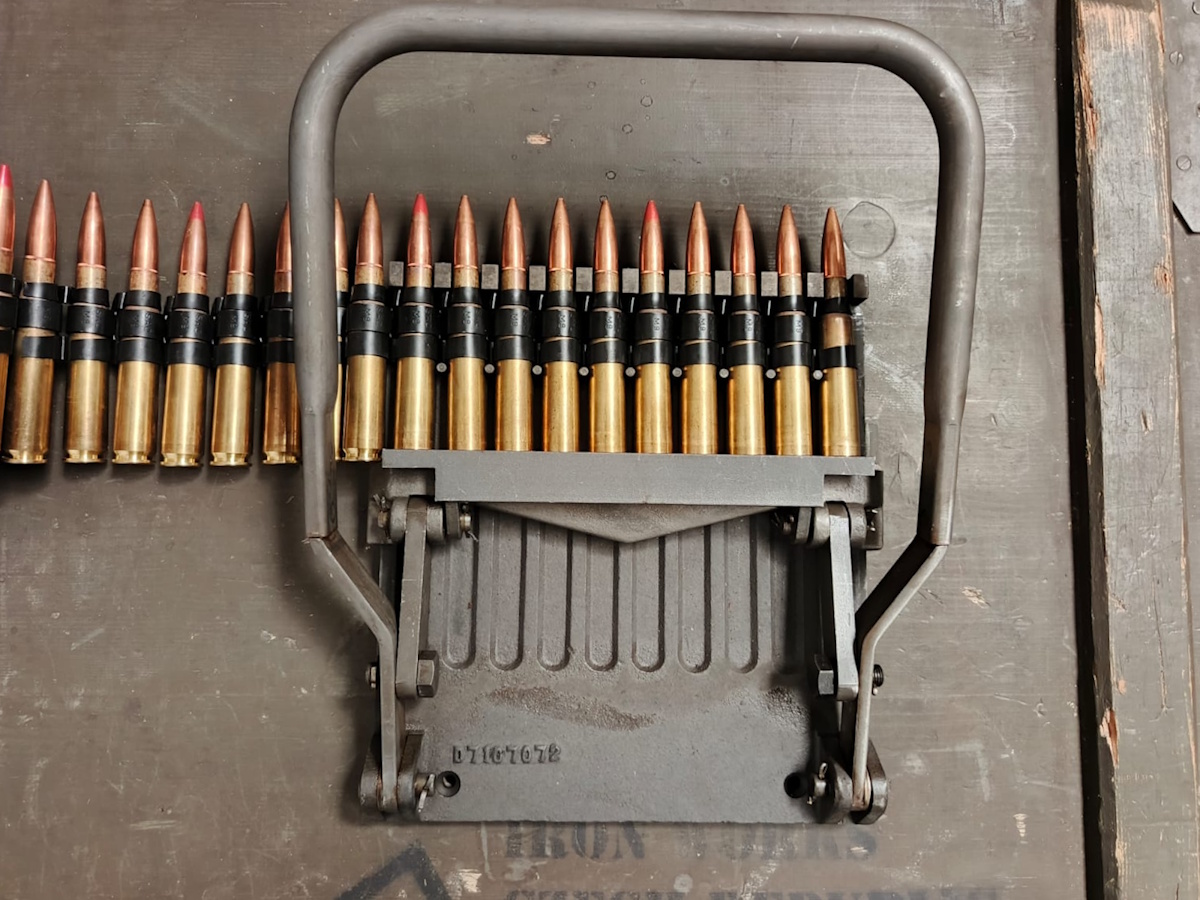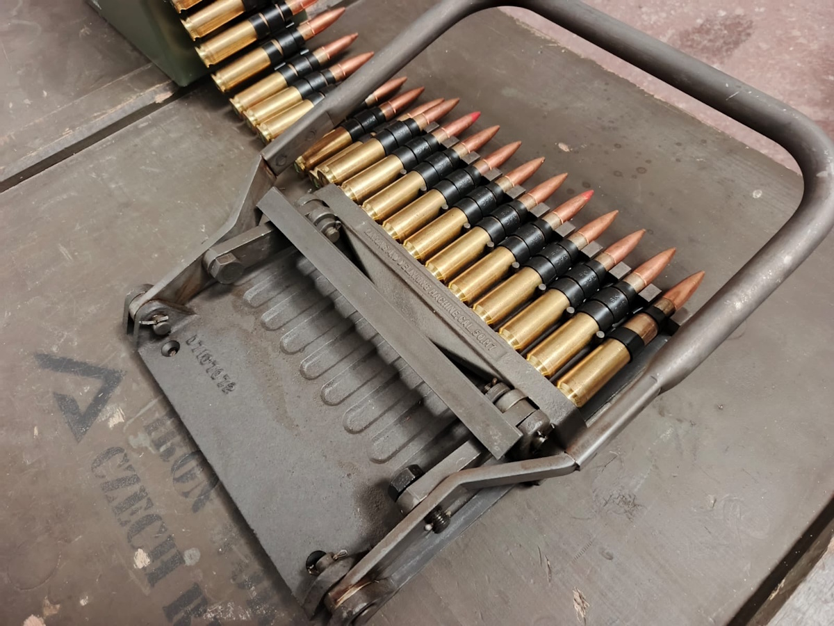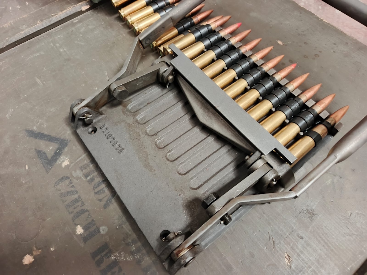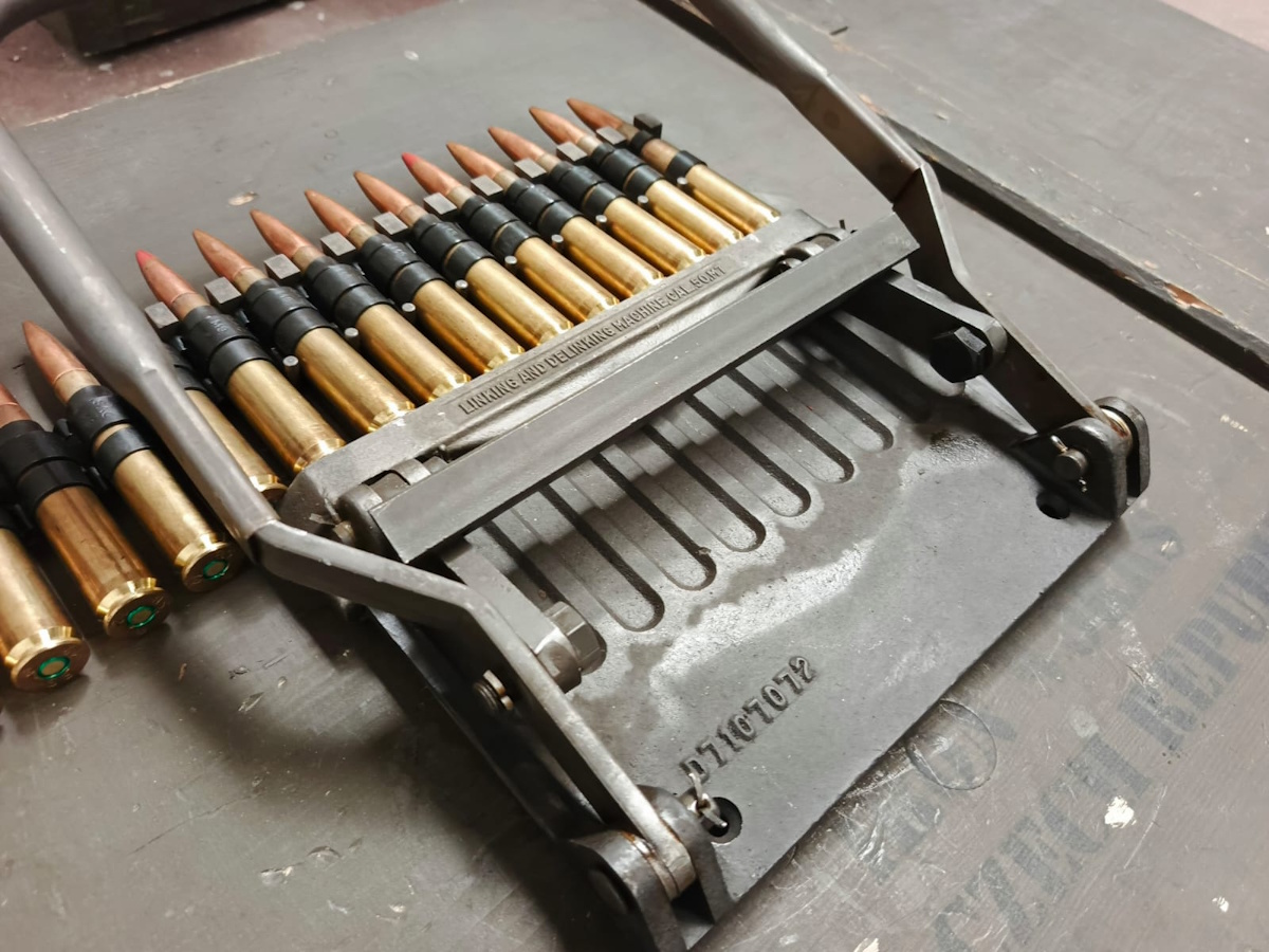 Americká armádní plnička M7 nábojových pásů r. 50 BMG (12,7×99) kulometů Browning M2, M3 atd.