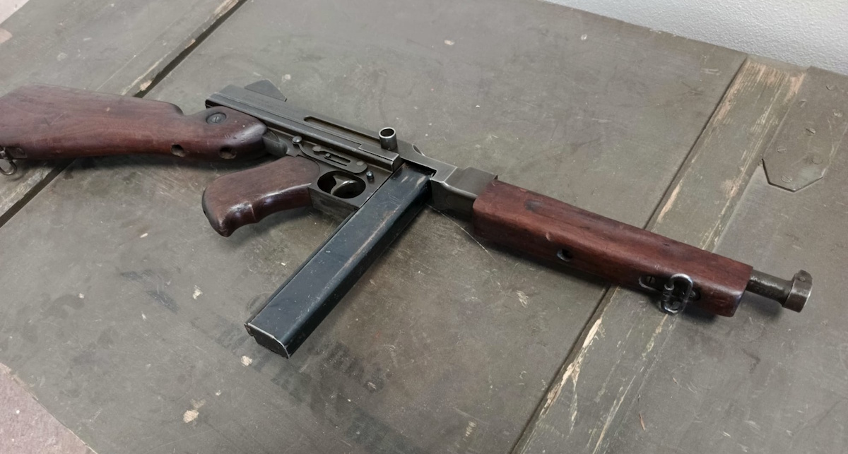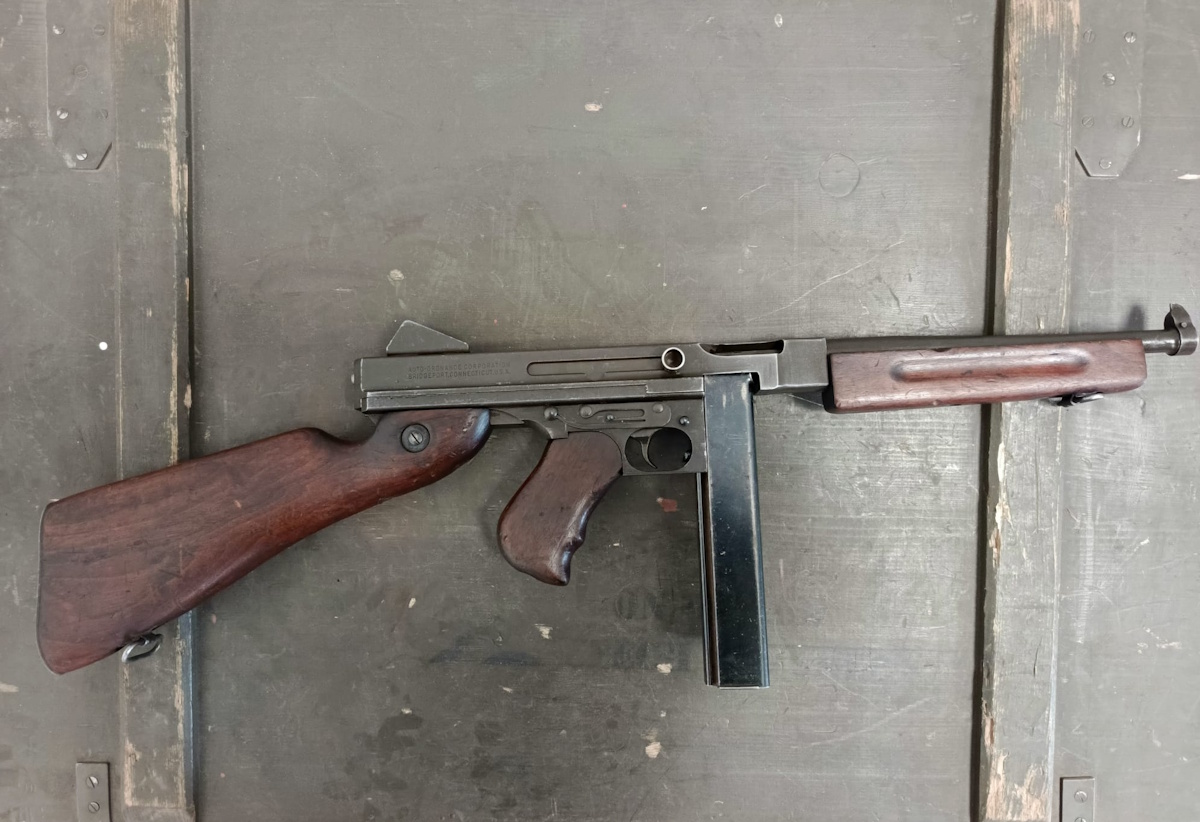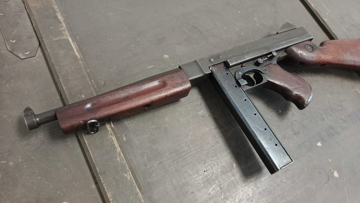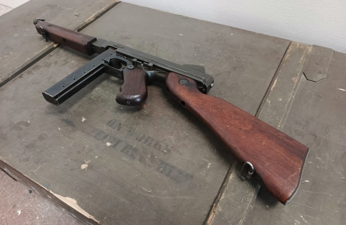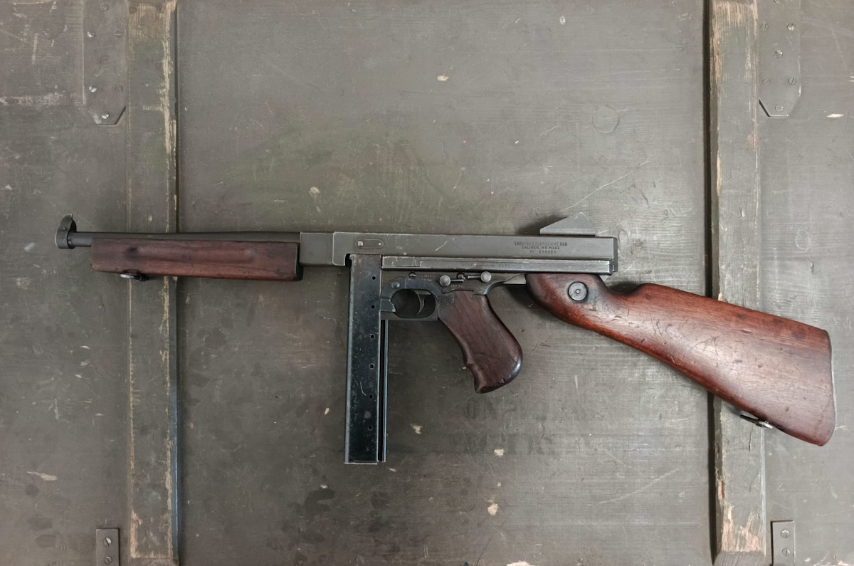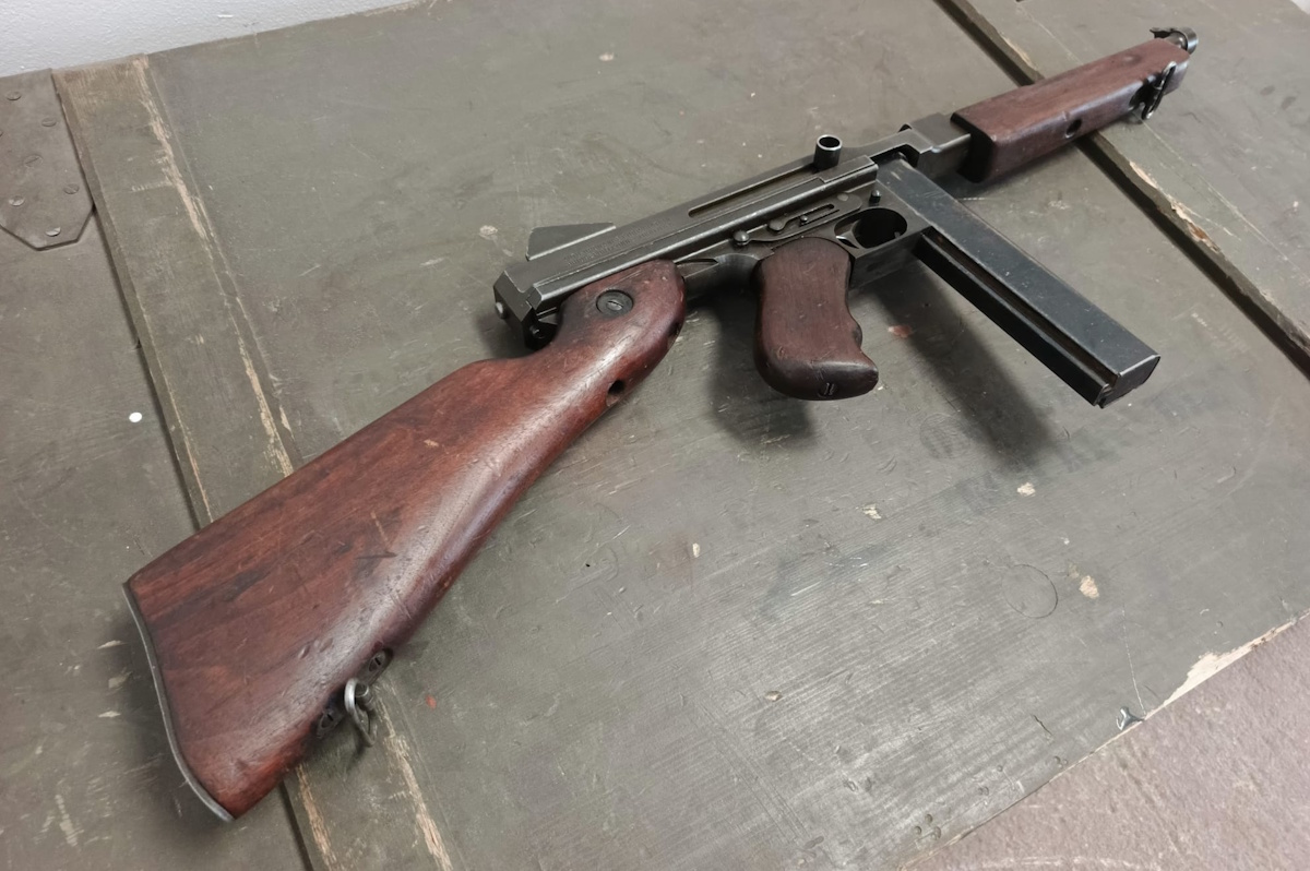 Samopal Thompson M1A1 upravený na samonabíjecí pušku, ráže .45 Auto.